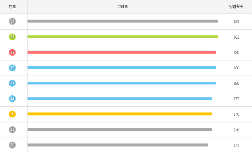 로또 1059회 행운숫자는 1, 12, 13, 17, 34, 43이다. 로또 예상번호를 고른 기준은 당첨 통계 중 당첨횟수에 대한 내림차순을 하여 그 중에서 번호를 고른 것이다. 로또는 독립시행으로 매 게임마다 확률이 달라지지만 특정 범위로 번호를 좁히고 그 때가 될때를 기다리며 일주일을 기다리는 재미가 있다.