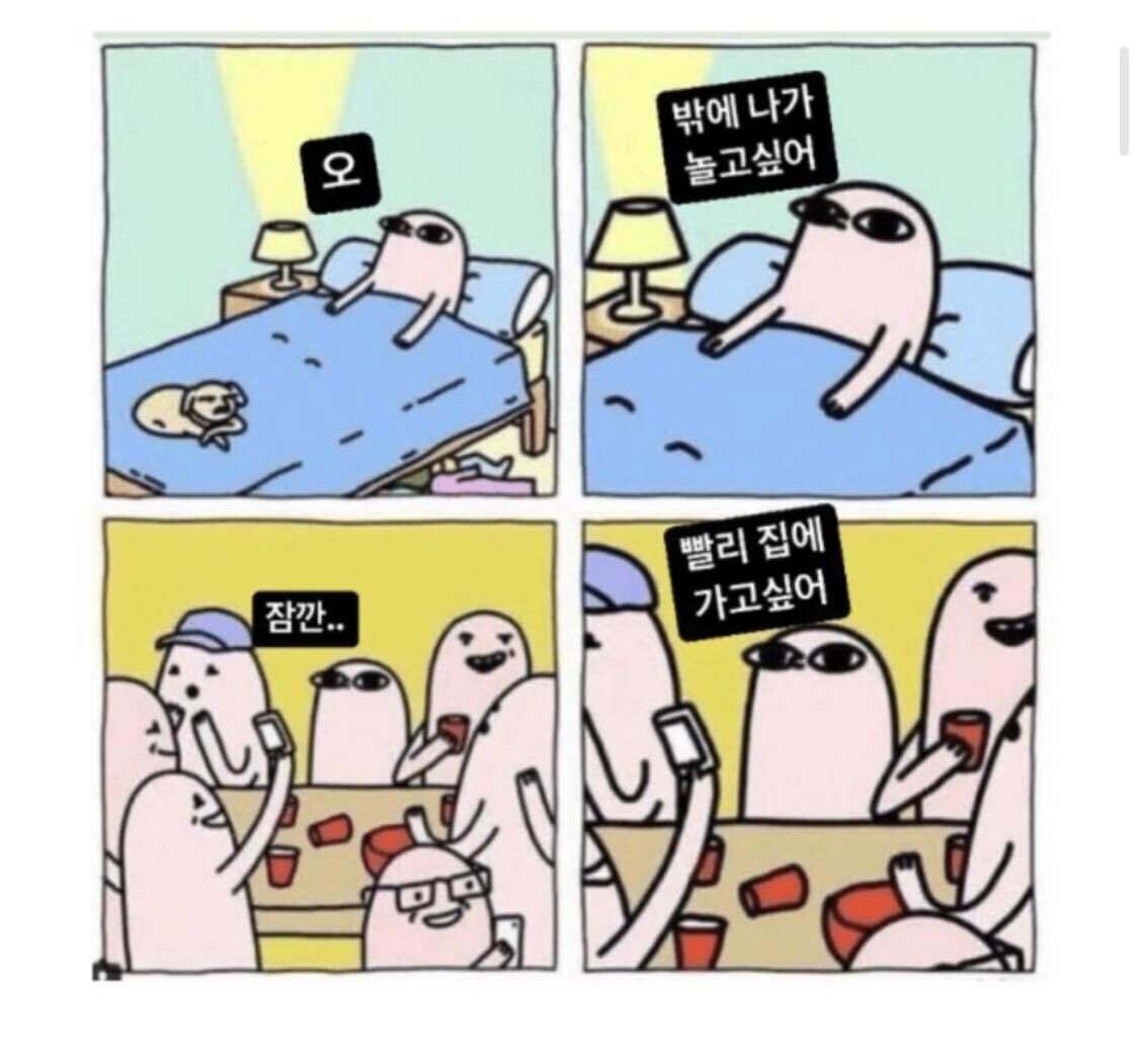 졸라 신나게 외향적으로 놀다가도 너무 지쳐서 혼자있고싶어져
