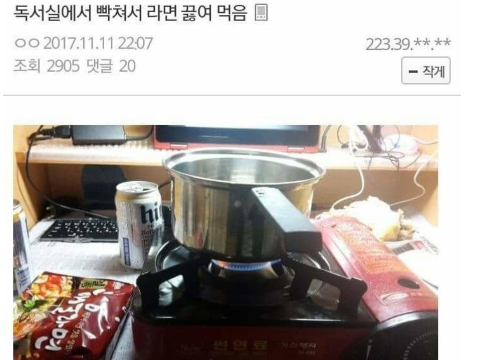 조용히 공부하는 독서실이 아니다. 라면도 끓여먹고 물건도 적치하고 때로는 잠도 자는 특이한 이들을 독서실 빌런이라고 칭하기도 한다.