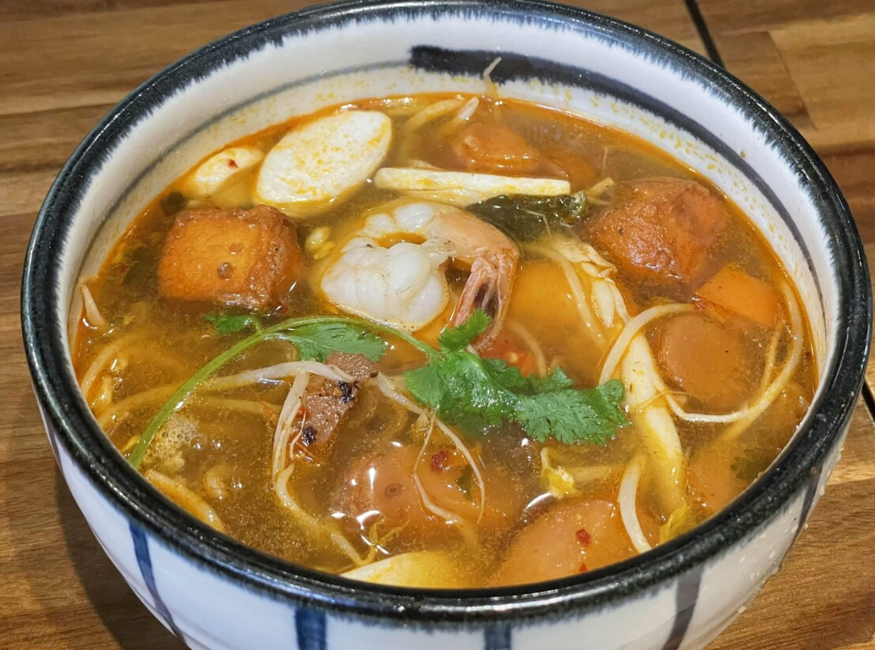 Tom Yum Goong: 새우, 레몬그라스, 카피르 라임 잎, 칠리 페퍼로 만든 매콤한 수프