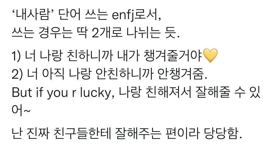 연인 간의 관계에서도 이런 점에서 큰 매력을 느껴. 도움이 됐기를..! enfj 참 괜찮은 사람이야 화이