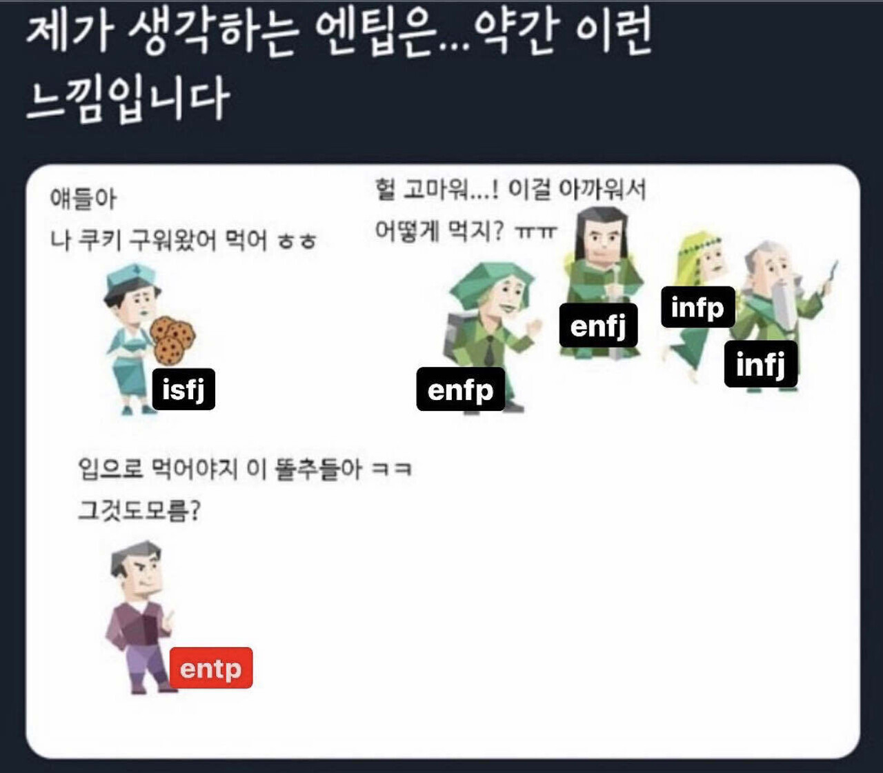 굳이 entp 성격 설명은 안할게 저기 위에 새회사 네이버형들이 잘 써줌
