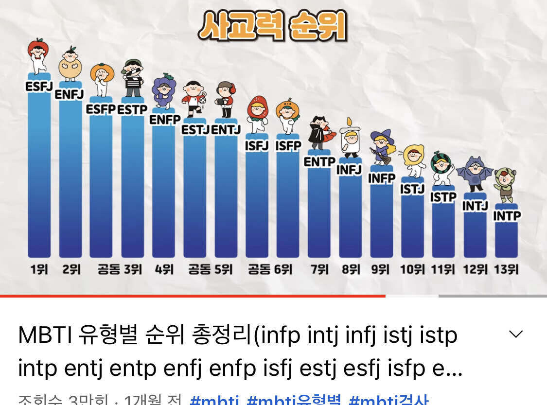 마지막으로 mbti는 그냥 재미로 하는 거야 정확히는 내 특정한 사회적 인격의 역할에 대한 거라서 본인에겐 거의 무의미하다고도 하네~ 재밌었으면 좋아요나 눌러주고 가 ㅋㅋㅋㅋㅋㅋㅋㅋㅋ