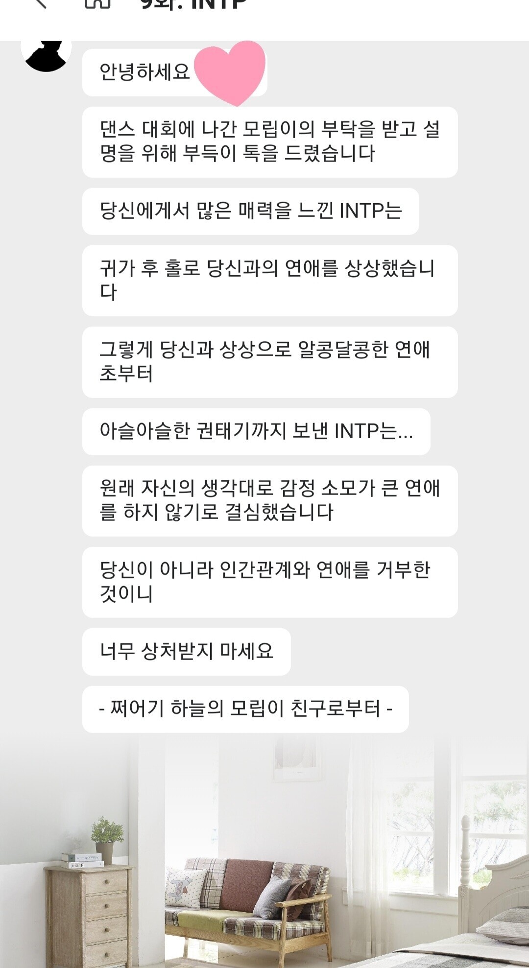 NF가 봤을때 인팁은 진짜 노답임 ㅋㅋㅋㅋ 진짜 인간이 아니고 로봇그이상 .. 근데 좋아하는 사람한텐 연락빠르고 탐구하듯 상대에 빠지고 공부한대